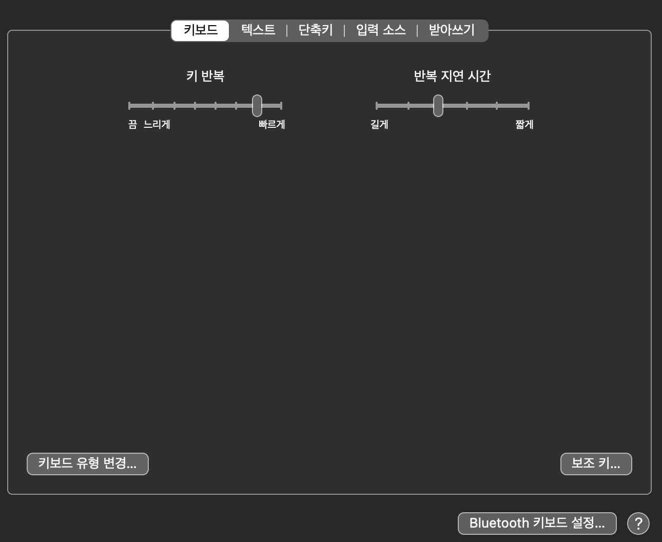 환경설정의 키보드를 보면 뭔가 기능이 있어야할 위치가 시원하게 비어있다. 그자리에 애플 키보드는 몇가지 옵션을 줄수 있다.